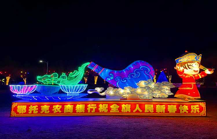 不断满足全旗居民群众对文化生活的新需求、新期待,提升居民群众的文化获得感、幸福感,增强群众文化自信、精神力量,培育和践行社会主义核心价值观,鄂托克旗在元宵节期间举办迎新春,闹元宵的灯会活动。以乌兰广场,生活广场等街道为中心,灯火阑珊饰宛园。各式各样的花灯,色彩缤纷、精美绝伦,春节期间,传统花灯将持续点亮打造融合现代科技、潮流装置打造大型沉浸式光影互动灯会,营造新年里普天同庆的盛世场景。