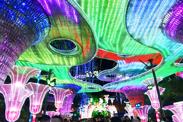 《梦幻仙境》完美融合自贡彩灯制作工艺制作成五光十色的通道,让人如临仙境。